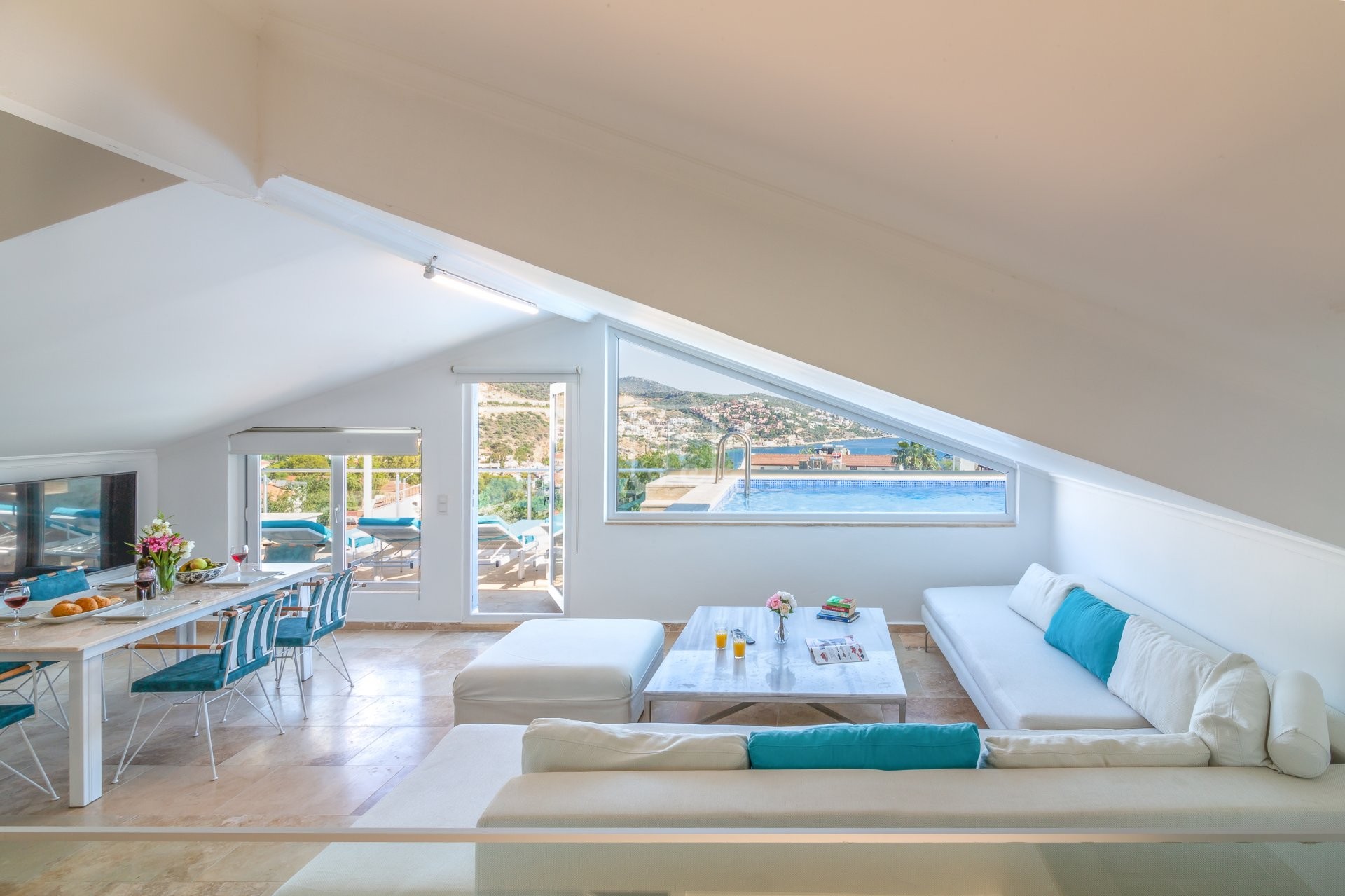 Marnie Apartment is a stylish three-bedroom penthouse duplex situated in an ideal central location in Kalkan, offering both convenience and tranquillity. Despite its proximity to the lively heart of town, the apartment provides a quiet, peaceful atmosphere, perfect for relaxation.