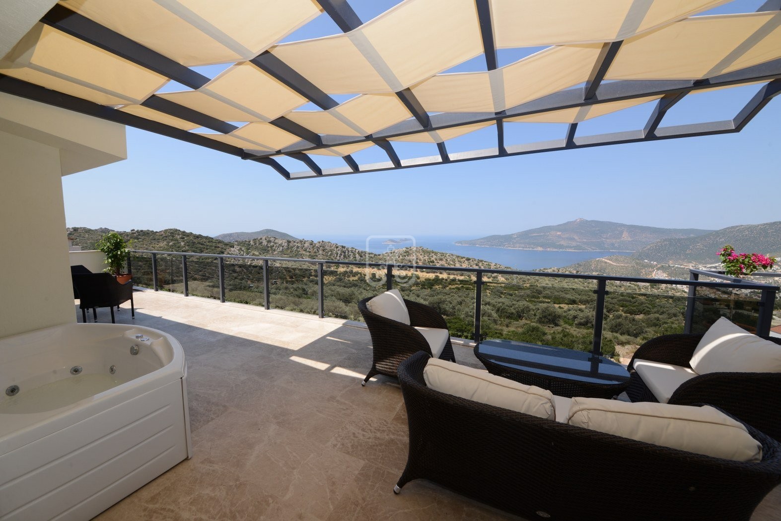 Villa Kral is a six bedroom villa located in the Kordere area of Kalkan, less than a 10 minute drive from the centre of the old town. The villa has a large outside area and would be perfect for family groups and/or a group of friends as there is space to come together as well as escape for "me time".