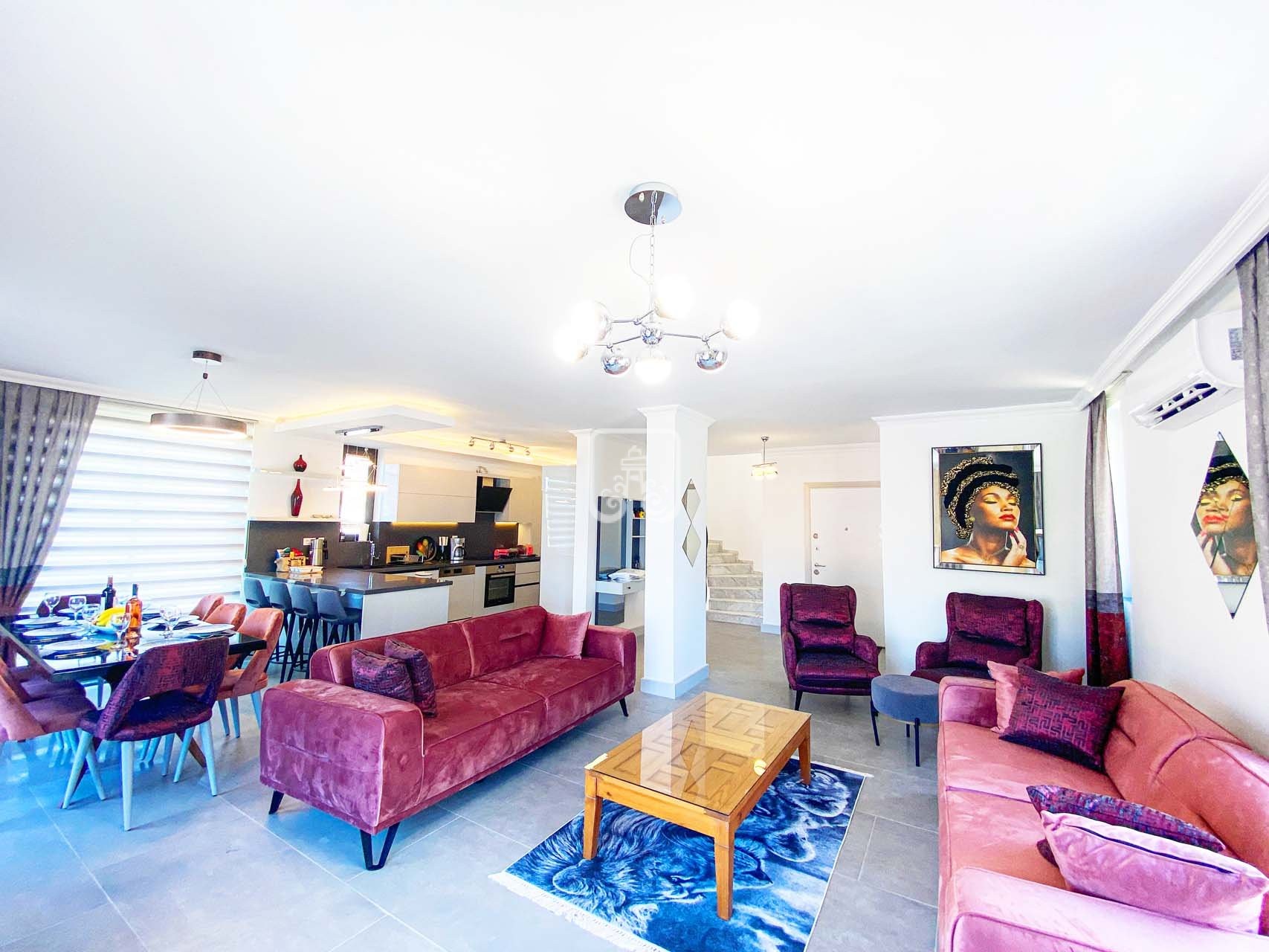 It features 5+ bedrooms, two separate living rooms, a fully equipped kitchen, and two mini kitchens. Its superb location, within a 10-minute walk to the town centre, shops, and restaurants, and close to Kalkan's famous beach clubs (Mahal Beach Club, Kalkan Beach Park, Denizim Beach, Palm Beach, Zest Beach), makes it an attractive facility for all age groups throughout the year.