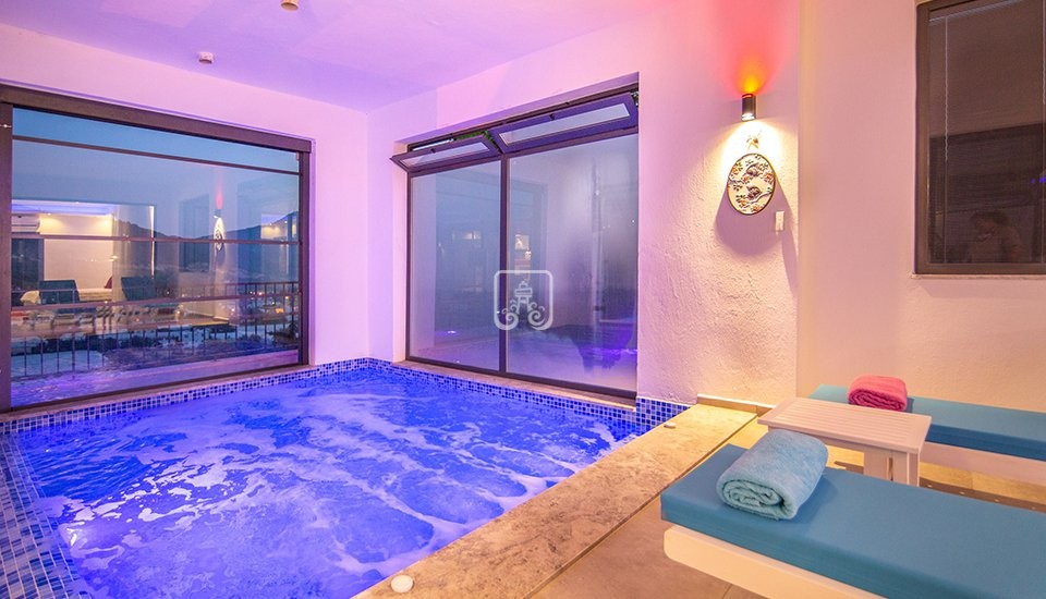 There is a lounge, kitchen, dining area with doors that lead to the bedrooms, the master has an Emperor bed and en-suite with access to the indoor heated pool and Jacuzzi. There is also a twin room with an en-suite, and a sauna with Turkish bath for that real feel of luxury.